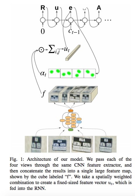 为了识别每一块名牌,该网络利用了名牌多至4张的照片。特征由CNN来析取,在空间注意(考虑了像素坐标)的帮助下进行扩充,然后再把结果送给LSTM。