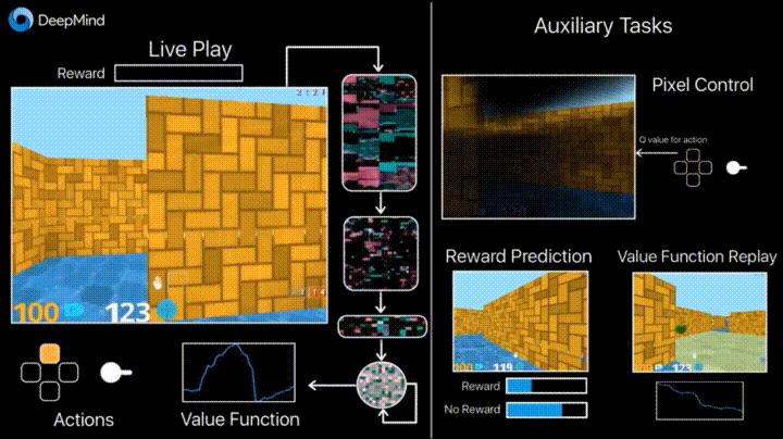 DeepMind在博客https://deepmind.com/blog/reinforcement-learning-unsupervised-auxiliary-tasks/中报告说额外损失(辅助任务)的引入,比如预测某一帧的变化(像素控制)一边代理更好地理解行动的后果,可以显著加快学习的速度。