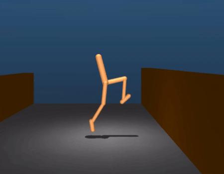 研究人员设法实现了这一点:他们通过搭建一个有障碍的复杂环境并且提供一个简单的回报机制用于运动中的处理来教代理(躯体模拟器)执行复杂动作。