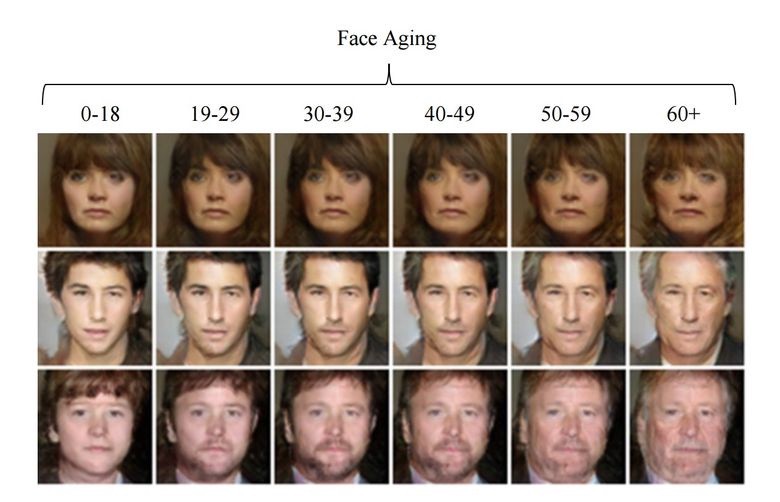 《用有条件生成对抗网络进行面部老化》这篇文章的作者就是这么干的。在用IMDB数据集中已知年龄的演员对引擎进行过训练之后,研究人员就有机会来改变此人的面部年龄。