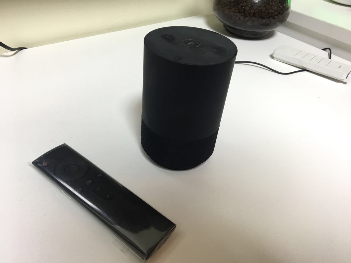 一进样板间,黑色的天猫精灵音箱就摆放在桌面,它的上方有电视,空调架设在墙顶端,它的右侧则依次放着插电的万能遥控器、摄像头、智能网关。
