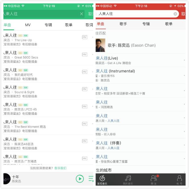 (腾讯音乐下架网易云音乐英皇歌曲 陈奕迅的《人来人往》只剩live版)