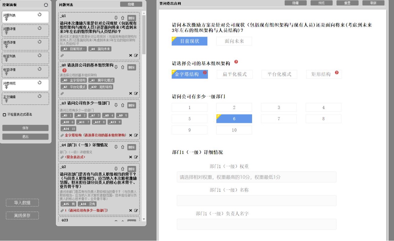 在客服帮助下,用户根据自身实际情况填写(公司基本情况、组织架构、财务等)各个版块信息,最后生成符合自身需求的股权架构、股权激励方案、协议等,和智能合同生成同理。