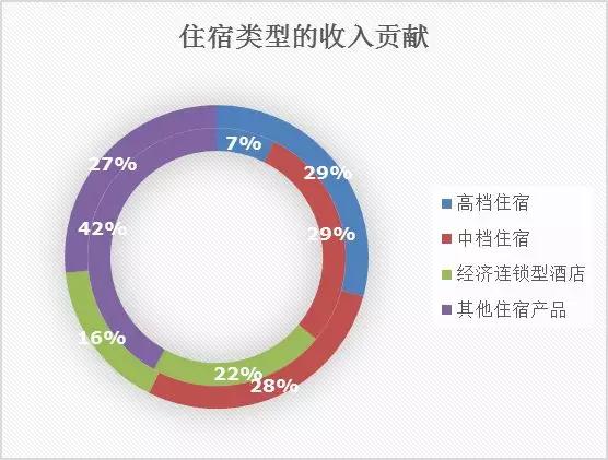 另外从收入的贡献来说,高档酒店用7%的客房规模贡献了整个行业29%的收入,中档酒店以29%的规模贡献了整个行业28%的收入,以1/3多的客房量贡献了一半以上的收入。所以未来尤其看好高档和中档住宿。