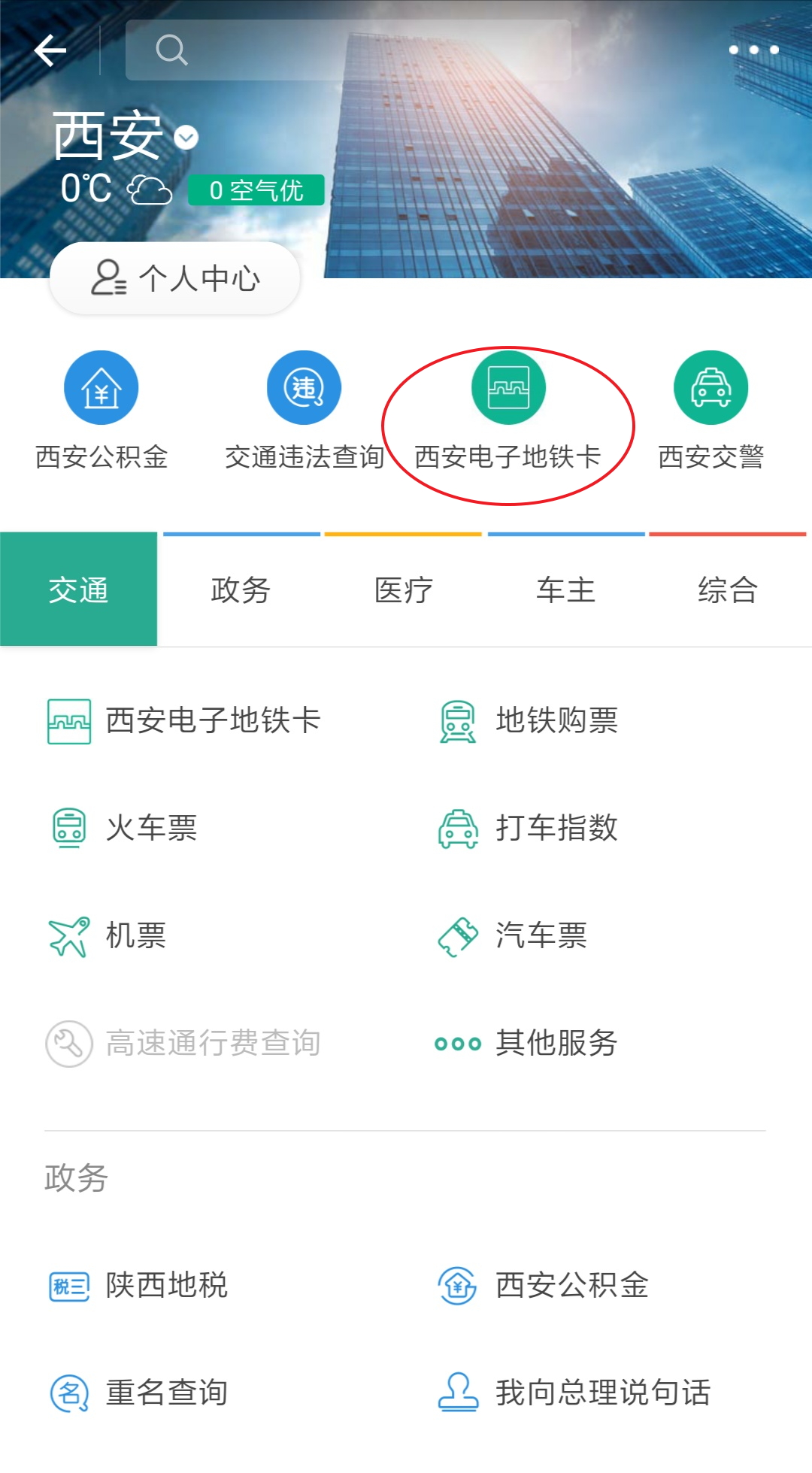 点击「城市服务」板块,会出现西安市城市服务界面。