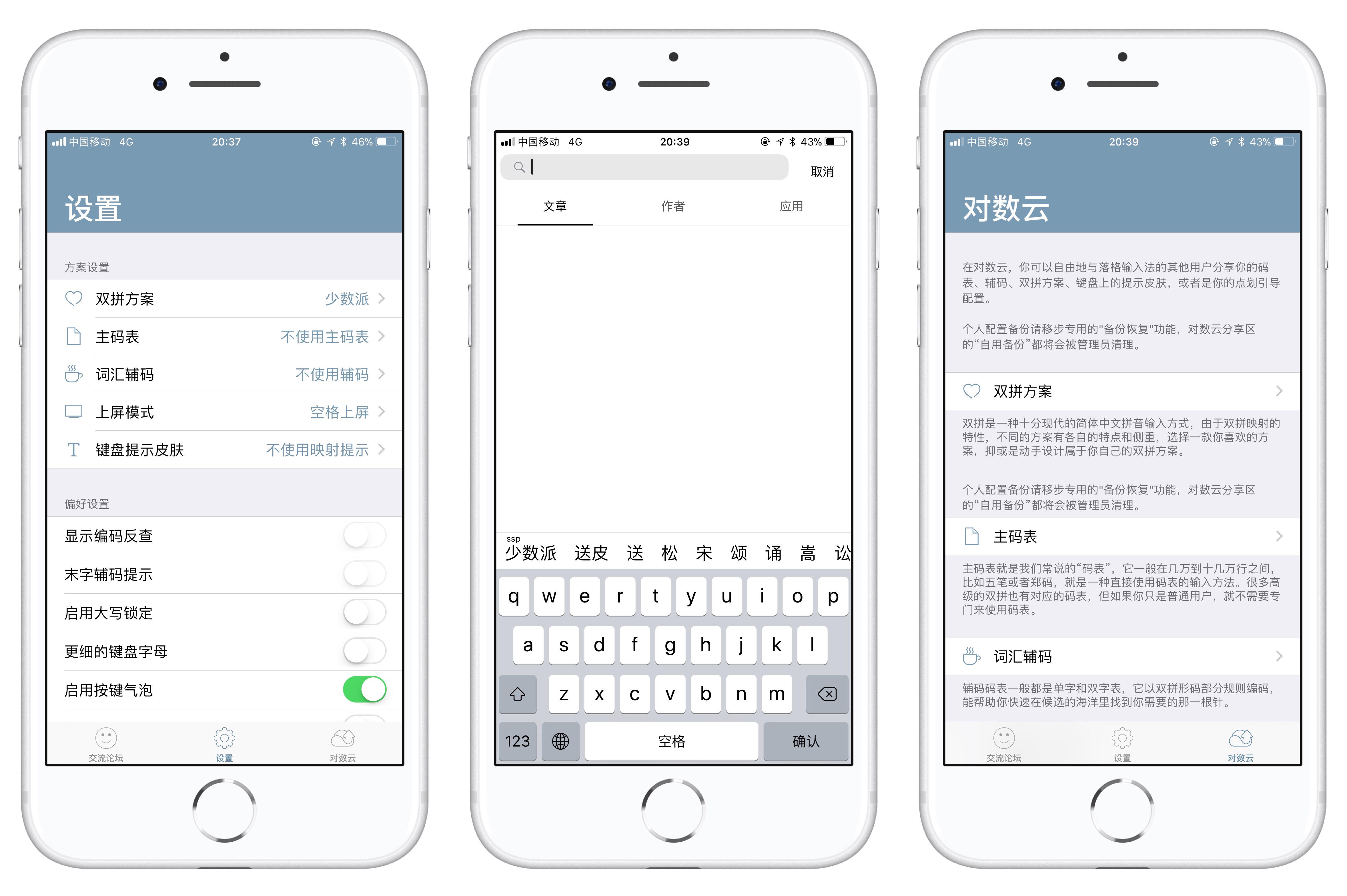 落格输入法 是一款 iOS 和 macOS 双平台的优秀双拼输入法,其具备丰富的自定义功能选项和简洁素雅的 UI 界面。由于支持自定义码表,你甚至可以通过配置将其变为五笔等输入方式,用自己熟悉的方式愉快输入。