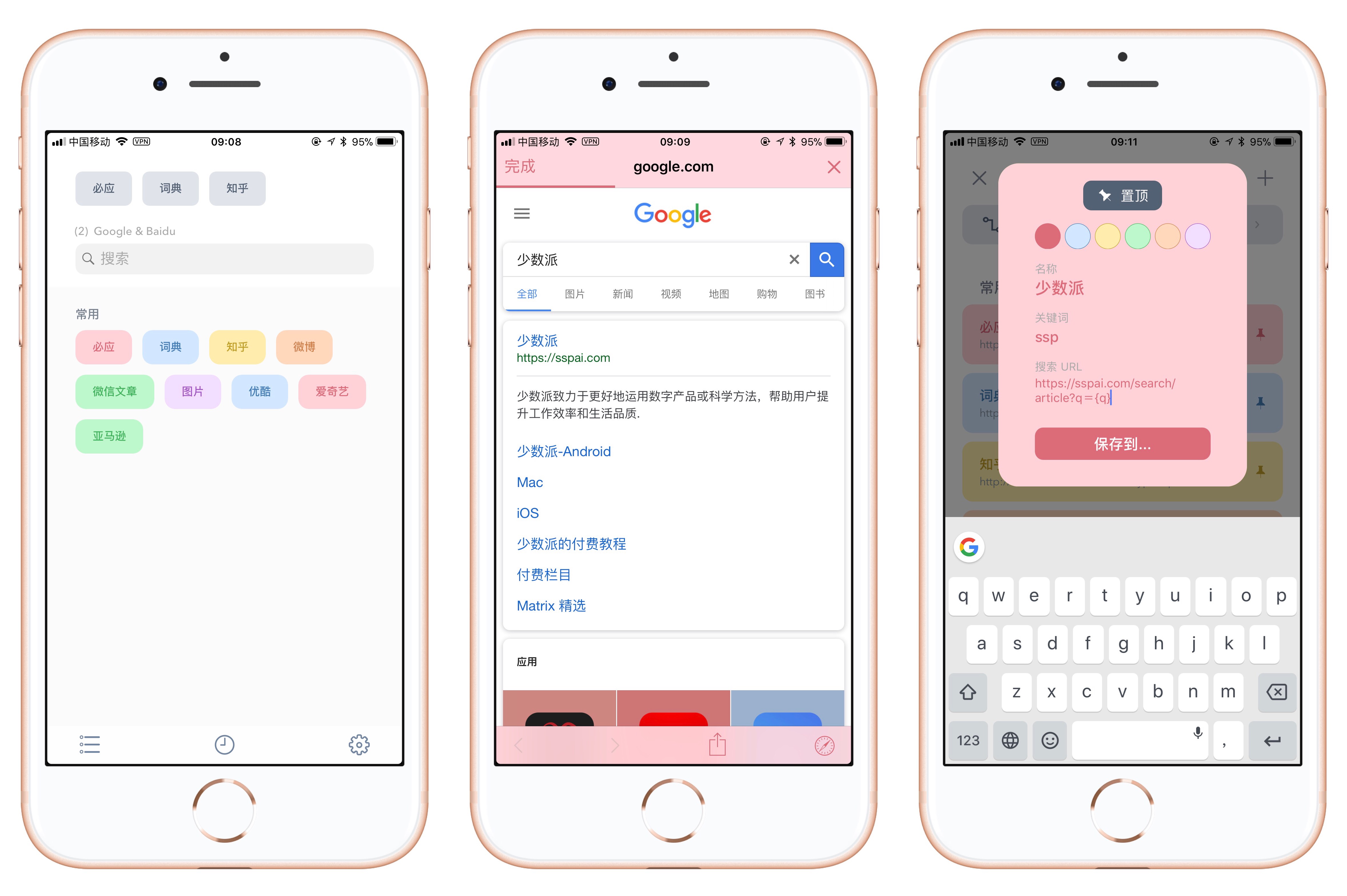 在 Ai Search 2 的推荐库中,你可以分类浏览常用网站,也可以添加自定义搜索引擎,并为它设置触发关键词。此外, 你还可以在人性化的界面中编辑搜索规则,让 Ai Search 2 更懂你。当然,iCloud 同步也是不可缺失的功能,让你不必担心更换设备后会丢失数据。