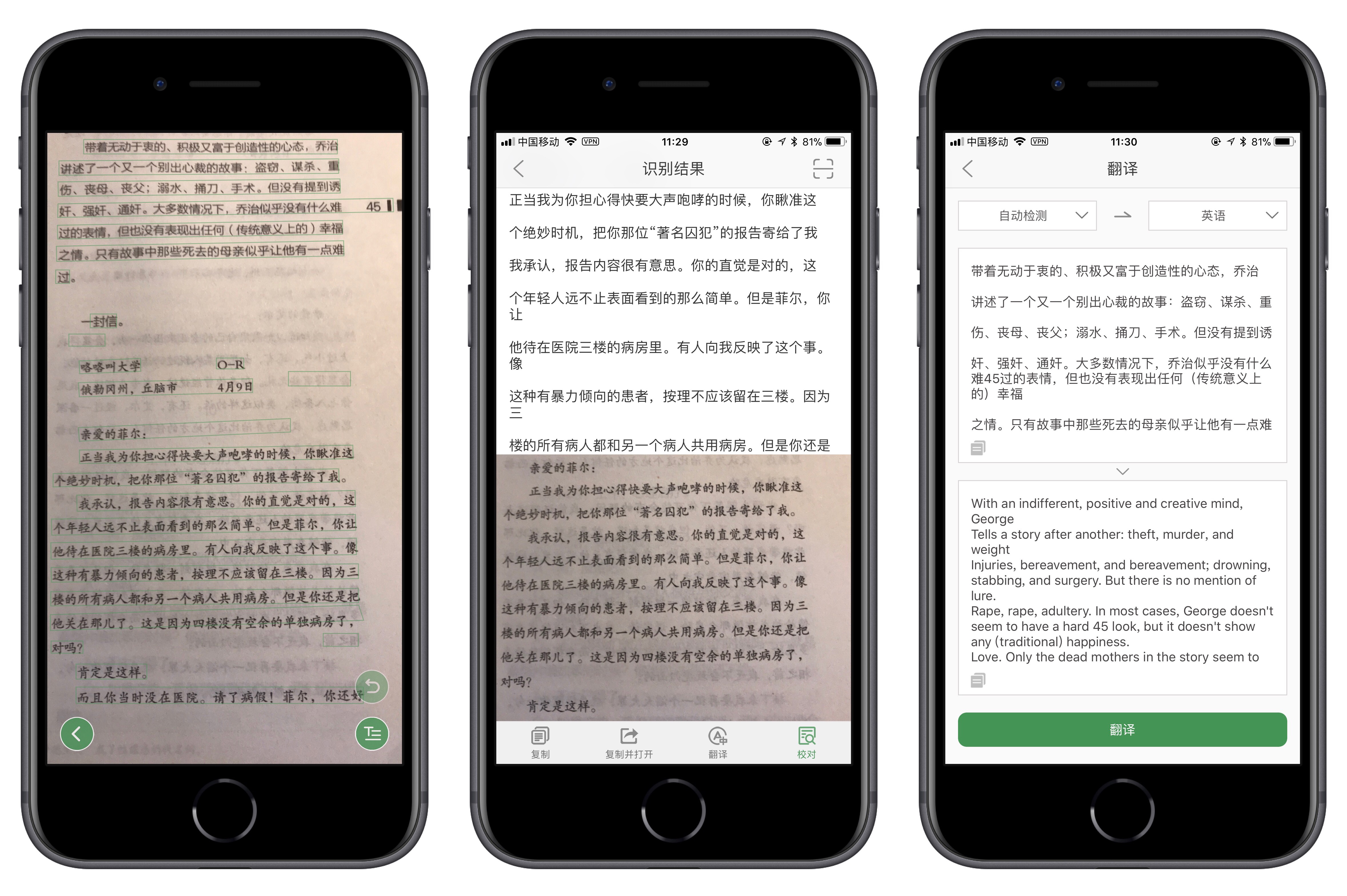 作为一款 OCR 文字识别 App,白描的基础功自然不必多说。除了百度 API 的强大中文技术积累外,白描还对长图、表格等特殊文件格式做了深度适配和优化。此外,你还可以利用白描直接将文本翻译成其它语言,省去打开其它 App 的功夫。
