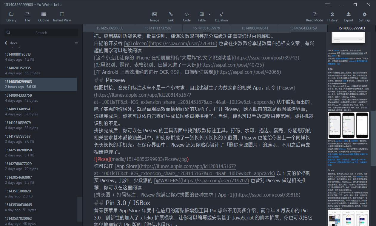 尽管仍处于 beta 测试阶段,但 Yu Writer 已经展现出一款优秀 Markdown 编辑器应有的全部特质。从主题样式,到界面模块,再到文档库、公式和包括微信公众号在内的丰富导出格式选择,你几乎能在 Yu Writer 中找到自己想要的一切。