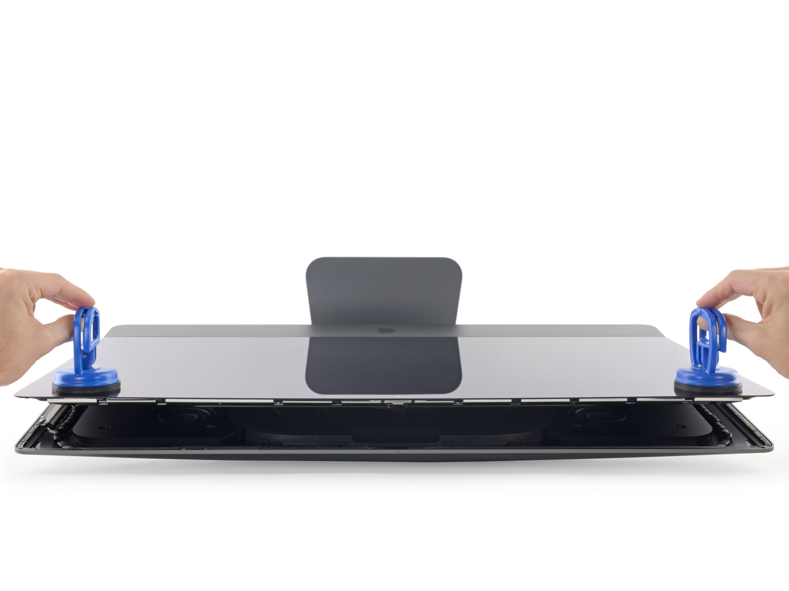 (拆卸 iMac Pro 的屏幕,图片来源:iFixit)