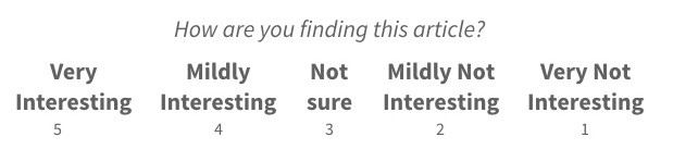 这个评价范围有3个选项。如果有5个选项:“有趣”、“一点有趣”、“不确定”、“一点无趣”和“无趣”,你回答起来就不那么简单了。什么叫“一点无趣”?意思是说,你有一点感兴趣,但是文章让你感兴趣的程度不足以让你继续读下去吗?