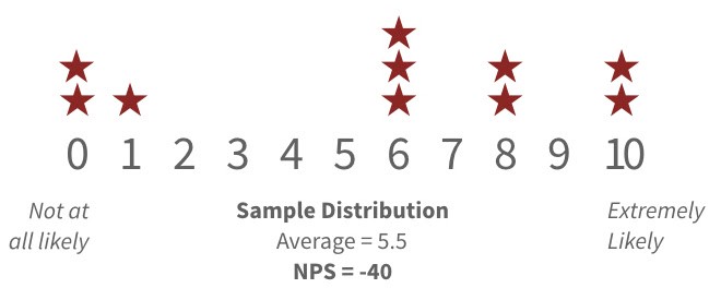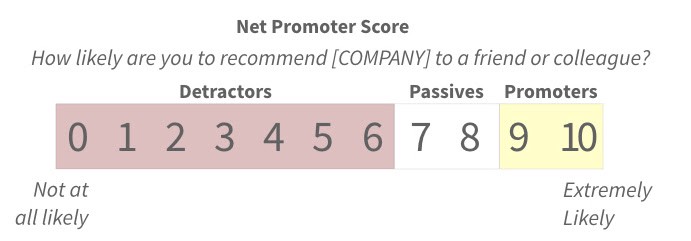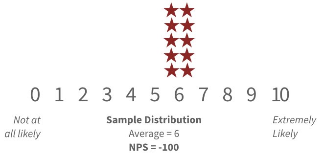 这是因为,NPS的基本思维是,一个给出中立评分的人不会像推荐者那样,跟别人说公司的好话。 中立评分者也不会忠诚。 我们需要把这个中间群体转化为推荐者。 所以,目前给出中间群体也算在批评者之列。