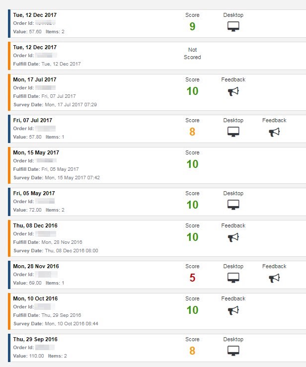 以下是英国分析顾问、NPS爱好者Dan Barker给出的例子——一个来自单一电子商务用户为期16个月的NPS数据摘录。