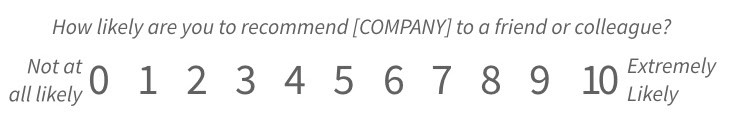净推荐值评分的一个疯狂之处,就在于它的计算方式。 初始数据来源是一个简单的调查。 受访者要回答这样一个问题:你向朋友或同事推荐某公司的可能性有多大? 以0-11分为评分范围,0代表“根本不可能”,10代表“非常有可能”,让受访者从中用一个数字作出评价。 (后来的调查发展出了不同版本,Fred Reichheld建议调查者问受访者给出该评分的理由,我们稍后会解决第二个问题。)