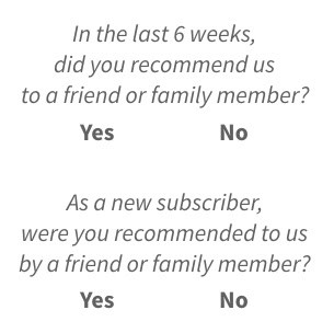 如果我们真的有兴趣了解别人的忠诚度,我们可以问一个不同的问题:在过去的六周里,你是否有把某公司介绍给朋友或同事?事实上,Netflix运营早期向客户提出的就是这个问题。 Netflix还问了另一个关键问题:你是否经同事或朋友推荐,才使用我们服务的?