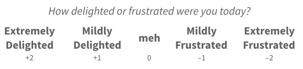 如果有7个选择,就更困难了。这时候,光是贴标签,可能信息量已经太大,所以我们转而使用数字:很有趣,6分,5分,不确定,3分,2分,很没趣。