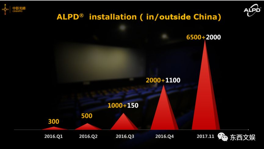 从全球市场来看,巨幕近些年经历了快速的发展期,与各地的院线运营商为阻止观众流向至包括流媒体平台在内的家庭娱乐设备,从而增加高端服务体验有很大的关系。据可查的数据,2015年末,全球PLF(Premium large format)银幕首次超过2000块,增速为27%。