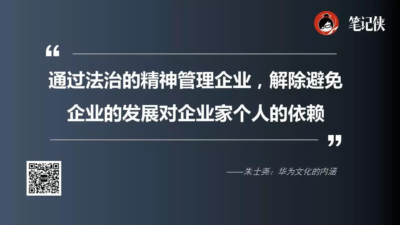 它表明任正非是中国几千万企业家中的第一个人,华为是几千万家企业当中的第一个企业,把企业管理上升到法的程度,用法治精神管理企业。也就是说通过法治的精神管理企业,解除避免企业的发展对企业家个人的依赖。