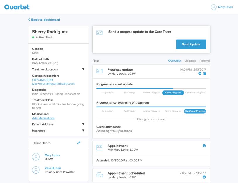 Quartet 于 2014 年在纽约成立,是一个关注生理与心理健康的平台,该平台还与保险公司进行合作。当患者应对疾病时,可能会对精神状态产生影响,Quartet 希望帮助患者建立一个更全面的保健方案。