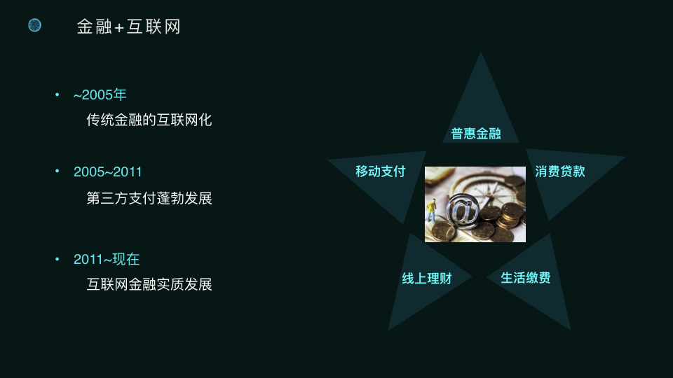 后面将会介绍如何在这几个要素如何在互金的背景下互相打磨,互相成就。
