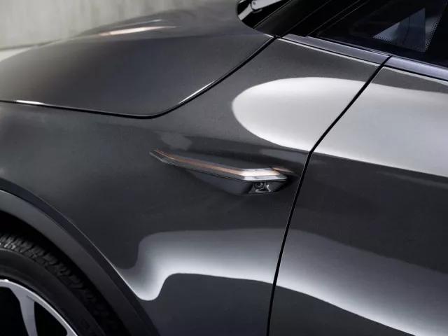 另外它也没有传统意义上的门把手,取而代之的是 B 柱上的开门按钮,按一下门就打开。因为是电子锁,所以它实际上也是一个「电吸门」。