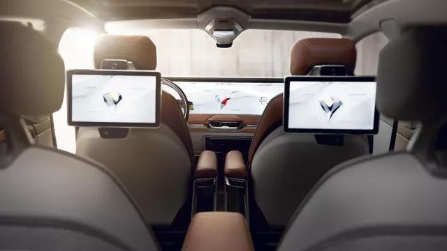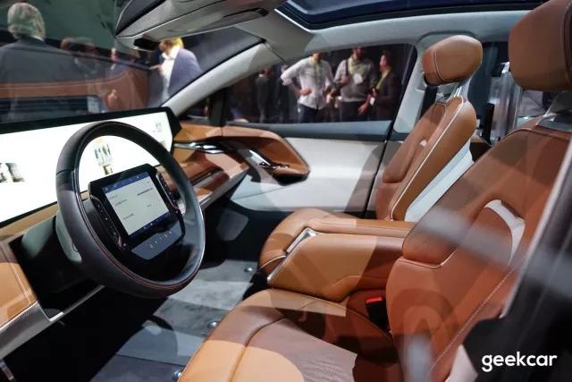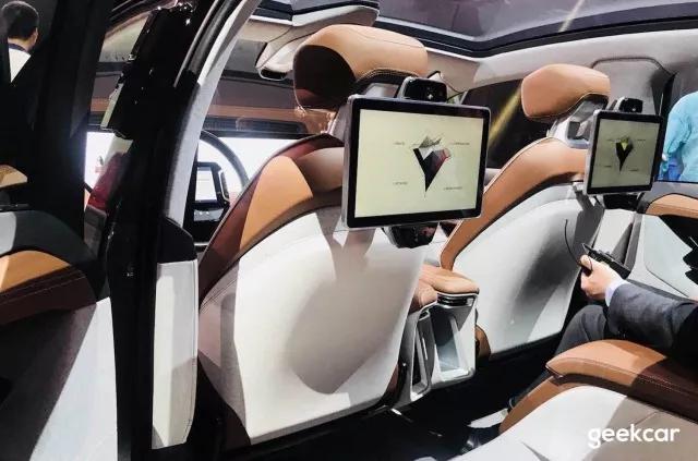 后排有两个娱乐大屏,这个很好理解了,很多传统豪华车都有。不过在功能上它应该会有创新,屏幕下方是带有面部识别摄像头的。