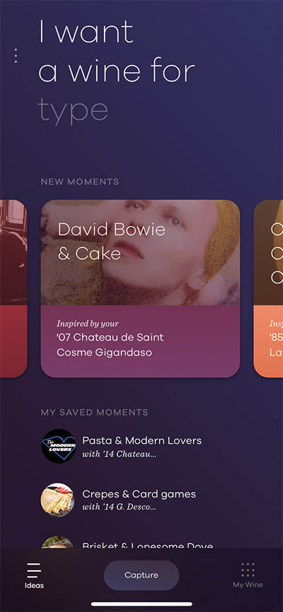 Coravin应用允许消费者对葡萄酒和电影,书籍,当然还有食物进行组合搭配。