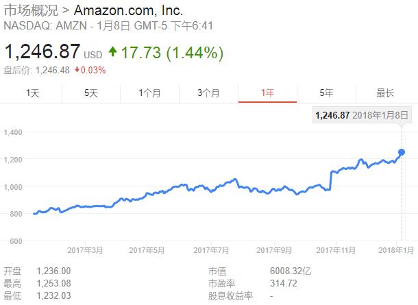 经过了美国黑色星期五购物节、感恩节和圣诞假期,亚马逊也的在线零售业务也获得大丰收。据彭博,在近五周的假期中,亚马逊在线上零售中的占比高达89%,这也是促使亚马逊股价和贝佐斯个人财富持续上涨的主要原因。2017年,亚马逊股价上涨了66%。