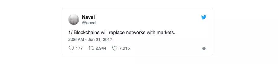 这看起来又是一个区块链狂热者对未来市场的“预测”罢了,但这个预测从Naval嘴里说出来,意义可能就不一样了。
