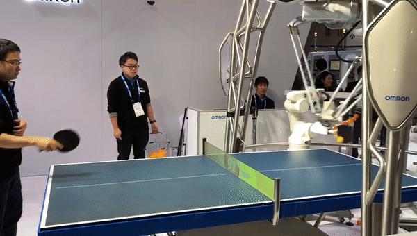 一个会打乒乓球的机器人,来自日本Omron公司: