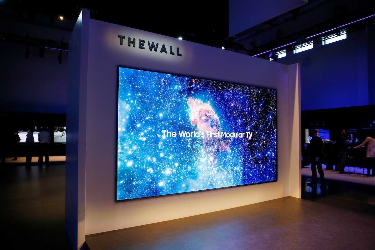 事实上,三星在展会前夕就推出了一款名为“The Wall”(墙)的电视,拥有12英尺(146英寸)的大屏幕。该电视采用个性化模块设计,通过连接其他屏幕,它几乎可以长到任何尺寸和形状。用户可以根据自己的需求自由调整电视的大小。