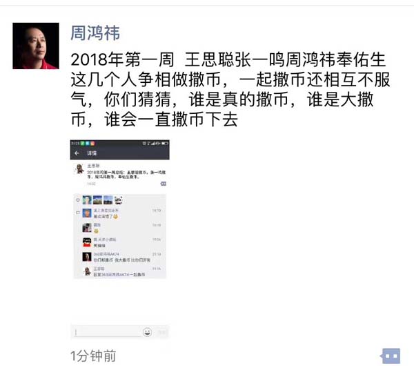 各家公司的大佬得了大便宜,还在朋友圈开始装傻充楞,比一比谁的戏更好更足,一场关于谁是撒币的朋友圈大辩论开始了: