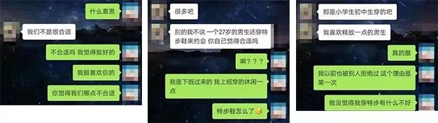 事情起源于萧内网论坛上的一则帖子。一名叫 “可乐爱猫” 的网友发帖说自己和相亲对象吃完饭回去后,对方在微信上回绝了他,理由是他穿了特步。姑娘认为一个 27 岁的男生还穿特步太不精致了,因为这是 “小学生初中生穿的”。