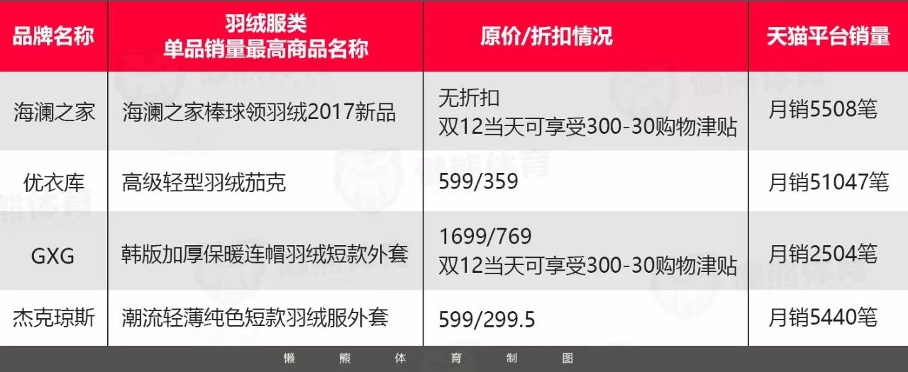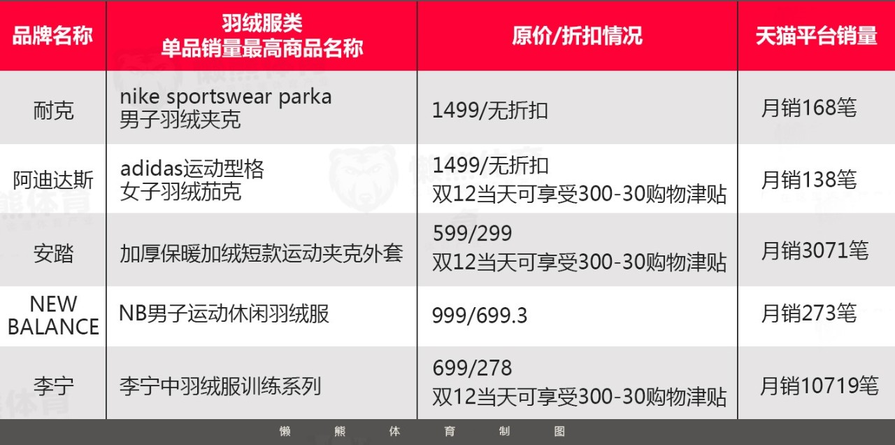 此外,运动品牌中的耐克、阿迪达斯、安踏、new balance的羽绒服产品在品牌所有产品线商品销量前10中占不到1%。