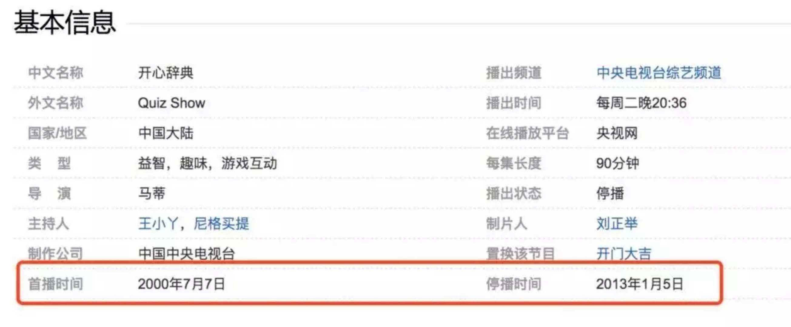 《开心辞典》:2000年到2013年,13年,模式和电影《贫民窟的百万富翁》一样,相信很多人在看这个节目的时候,数百万人盯着选择,为他捏把汗,为他喝彩和祝福。