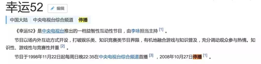 《幸运52》:1998-2008年,20年,节目不仅成就了李咏,还让大家很清楚的记住了一年有52周 。