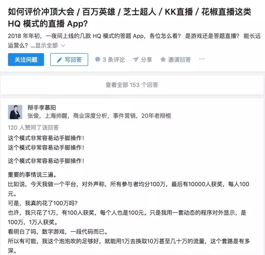 回到有奖问答直播的事情上,平台如果为了节省一点费用而掺水,一旦被发现,带来的负面会一发不可收拾,损失大得多。