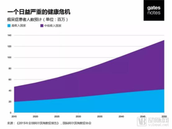 这些开支是发达国家增长最快的医疗负担之一。根据阿尔茨海默症协会提供的数据,美国人在2017年将花费2590亿美元看护那些患阿尔茨海默症及其它痴呆症的病人。盖茨担心,如果没有重大突破,在未来几年甚至几十年里,这些支出还将继续挤压财政预算。