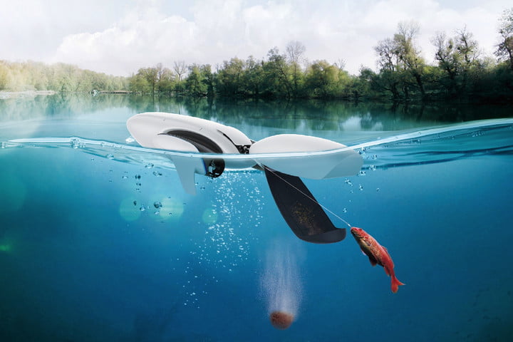 这个无人机能干到什么程度?它能在水下捕捉4K 照片和视频,向需要的人传送救生圈和游泳拉绳,用声纳技术绘制海底地形图,从40米外的地方探测鱼类并投放诱饵来捕捉它们……你甚至可以通过手机或者专用的遥控器来远程控制它。