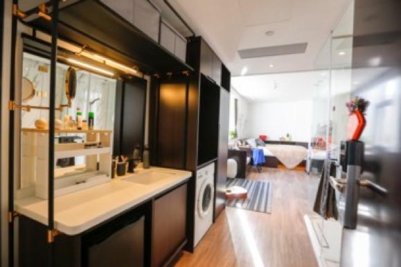 “租户主要来自在总部基地上班的人,短租产品的租户有出差、旅游、搬家暂住类型等的都有,虽然是使短租产品,但公寓也设计了洗衣、做饭、健身、社交这些功能空间,所以相比住酒店,短租产品更为方便。”城家公寓相关工作人员表示。