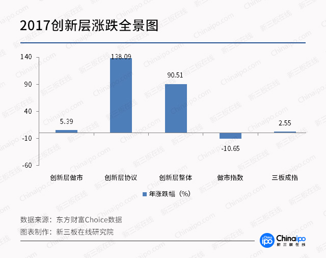 综合各种因素来看,新三板在线研究院认为,创新层公司正在与A股公司快速接轨,尤其是创业板公司。另外,对于投资人而言,2017年创新层的股价表现优于创业板也确实为更好的预期埋下了伏笔。