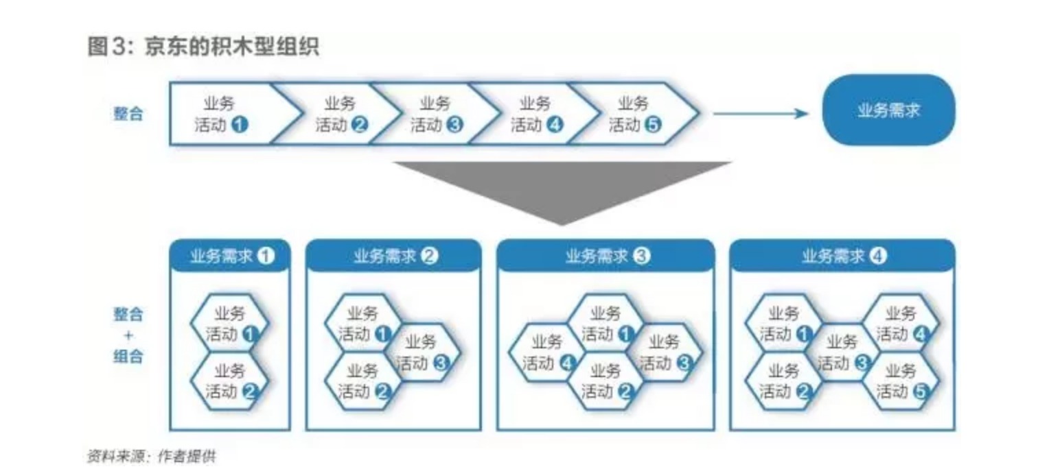 在此前刘强东给《财经》杂志的撰文中,曾解释过积木型组织的含义,主要是指“打开业务环节之间的强耦合关系,使之成为一个个可拆分、可配置、可组装的插件。通过对多个可选插件的个性化组合,可以满足客户不同的偏好和需求。”