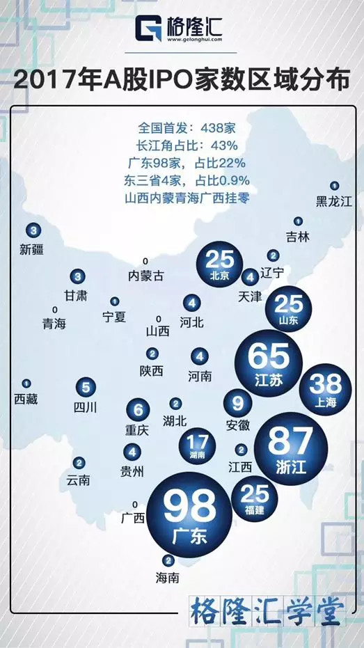任志强18年第一炮,18年房价不大涨,提人头来见。然而,房价也是分好几等的。从A股的区域分布图和17年最新的IPO区域分布图,可以看出,长三角,珠三角,过去是,现在是,未来还是中国经济最欣欣向荣的地区。