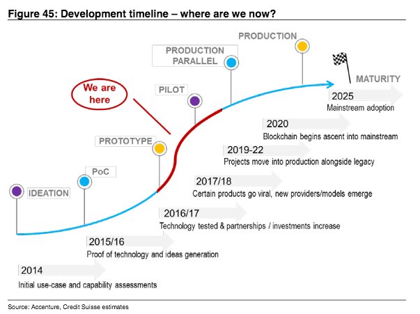 不过瑞信在近日的报告中指出:区块链真正成熟的时间要等到2025年。