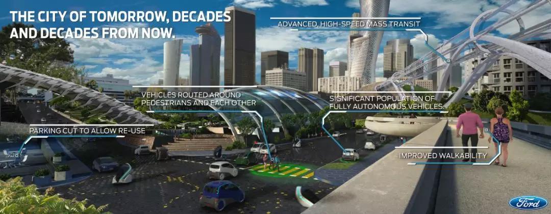 福特已经在构想“未来城市”的概念,在其中的出行将会以共享、无人驾驶、车联网等方式呈现,福特希望成为未来城市中,出行领域的领导者。