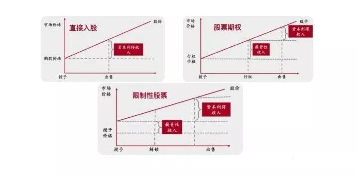 上面三张图表示了三种激励工具的含义和收益的获取。