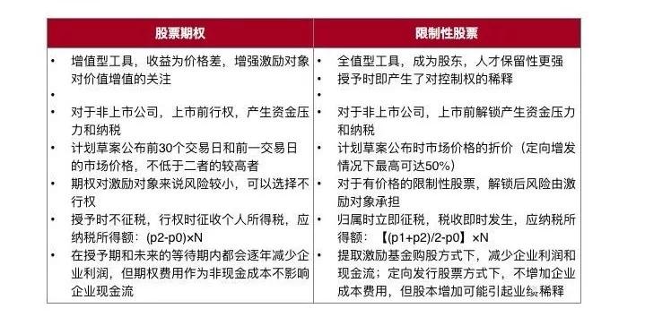 更多的公司面临的是股票期权和限制性股票两者的选择,也有的公司采用了股票期权+限制性股票的方式,其中的主要的区分大多是激励对象的层级。