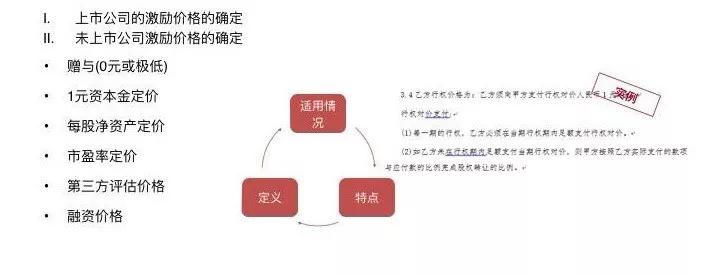 而非上市公司则可以根据公司估值或注册资本金进行股权激励定价,具体的折扣金额操作灵活性强,要遵循的大原则是,在股权激励价值得到认可的情况下,公司成本承受范围内,做到让激励对象有明确的激励感受,不忘股权激励的初心。