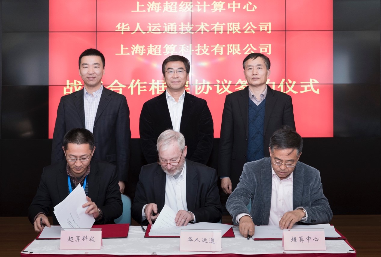 华人运通技术有限公司、上海超级计算中心、上海超算科技有限公司三方代表出席签约仪式