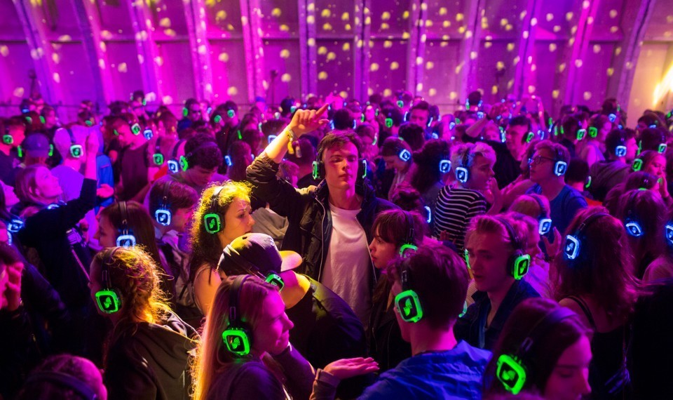随着声音技术的发展和人们对过度喧闹的回避,无声舞厅日渐受到人们的追捧。人们在同一个地方,带着耳机,调着相同或不同的频道(婚礼风、嘻哈风和电子风),跟随节奏自由摇摆。去华盛顿的一家无声舞厅体验过后,Matej Leskovsek发现:在这样的舞厅里你爱怎么动就怎么动,再也不会有人说自己没有节奏感了。